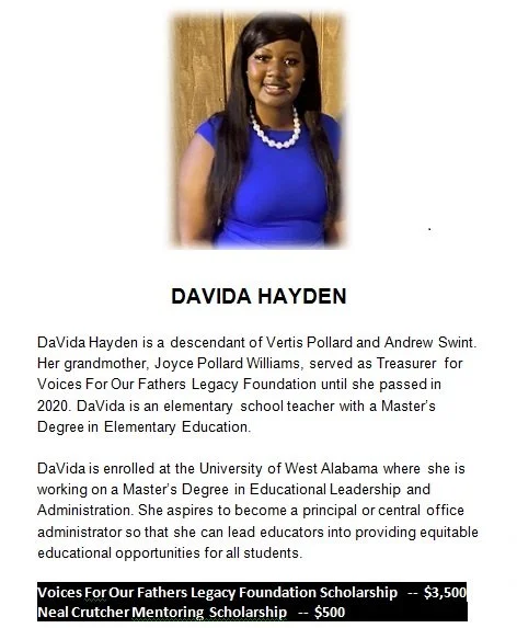 Voices For Our Fathers Legacy Foundation welcomes individuals and funding partners to join us in building this scholarship fund to support future generations of study descendants.