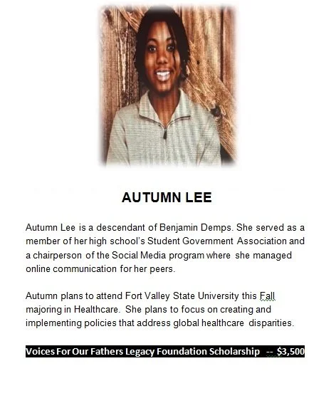 The Voices For Our Fathers Legacy Foundation today announced the recipients of its 2025–2026 scholarships—the Voices For Our Fathers Legacy Foundation Scholarship and the Voices Today for Change Tomorrow scholarship as well as two additional scholarships. The Voices For Our Fathers Legacy Foundation members: Lille Tyson Head, President, and Juan Macon, Scholarship Committee Chairperson, are proud to award a total of $66,000 to ten descendants.